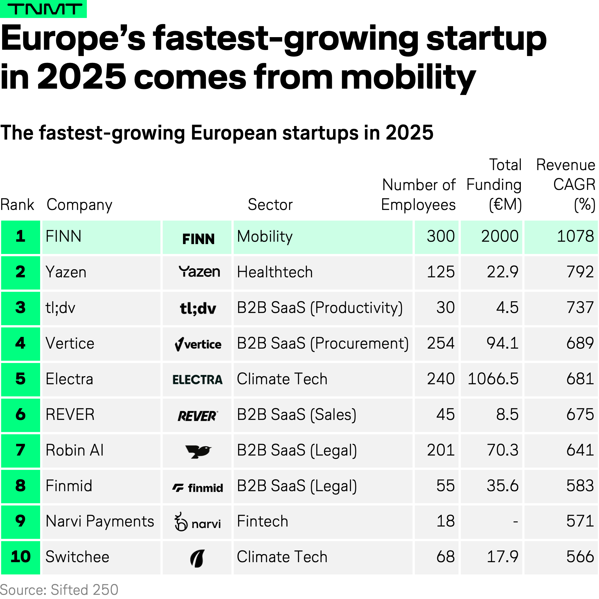 Recently, Sifted released its list of Europe’s 250 fastest-growing startups, and topping the ranking was a name we’ve been watching closely: FINN, the Munich-based car subscription company redefining how people access cars.